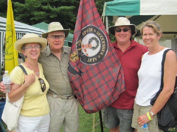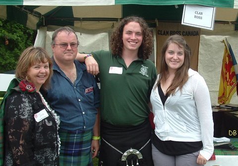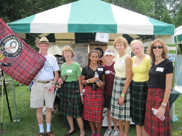 Click on any photo to obtain a larger version. PEOPLE AT THE CLAN ROSS TENTSince Clan Ross was the featured Clan at Fergus in 2010, we had a huge turnout. Over 75 visited our tent and signed the guestbook, and a record 43 Rosses marched in the parade at noon on Saturday. This event topped off a year of celebrations during the 50th Anniversary of the founding of the Clan Ross Association of Canada, Incorporated.