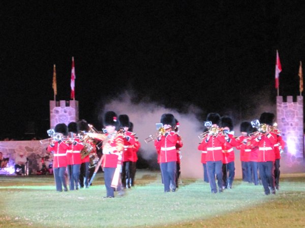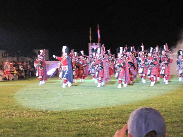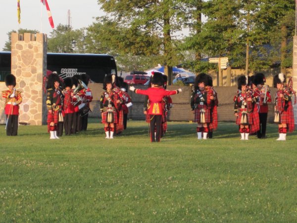 With Denis Snowdon as Master of Ceremonies, our regular tattoo opener (Tommy Leadbeater) took to the main field to get everyone involved. He was followed during the evening by the Royal Regiment of Canada, the 48th Highlanders and the Fergus Pipe Band. World famous John McDermott performed Scottish songs from the stage. Festival Highland dancers did a sword dance later during the tattoo, and I apologize for the lack of light in the photographs. One of the highlights of the evening was the Burlington Teen Tour Band, which was the only non-American band to perform in Hawaii on the anniversary of Pearl Harbour.