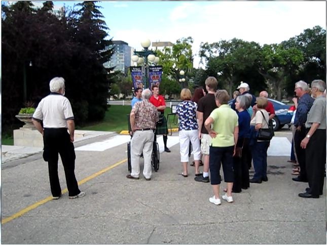 Before the tour group entered the Manitoba Legislative Building, Frank suggested that we use the opportunity to have our photo taken in the sunshine.