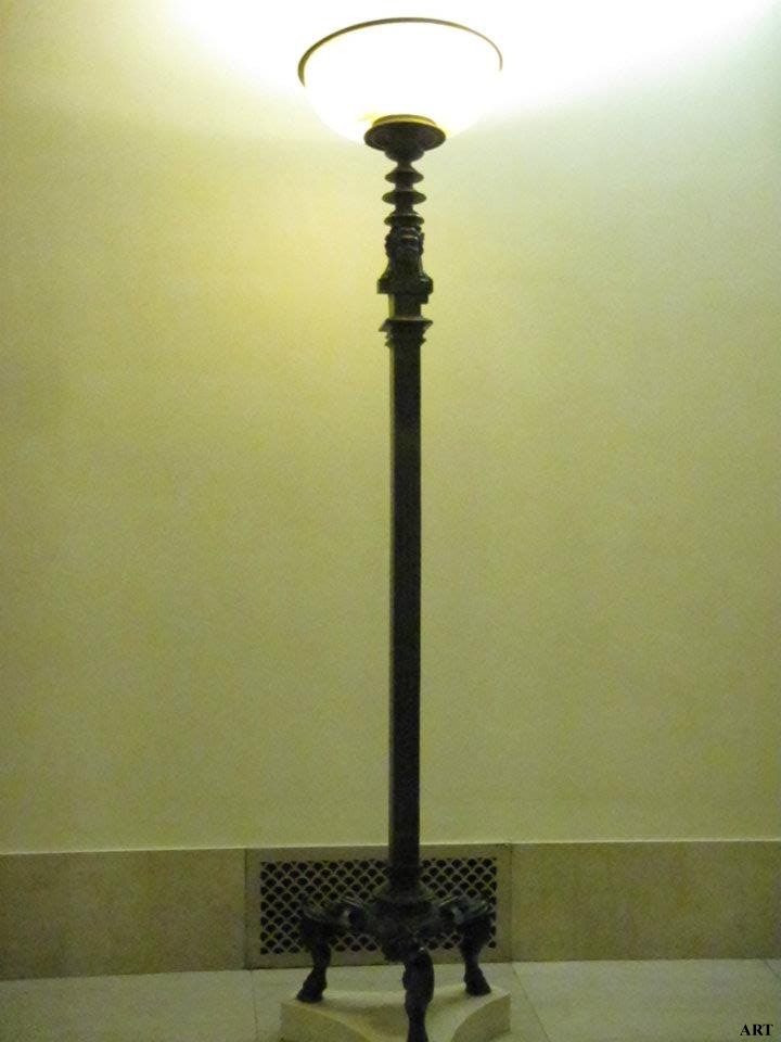 Lamp standards in the rotunda of the Pool of the Black Star have two faces, a male and a female, beneath the globe. The hermaphrodite (i.e. offspring of Hermes and Aphrodite) is an important symbol in alchemical works. Note the hooved feet on the bases, which suggest Pan as the son of Hermes.