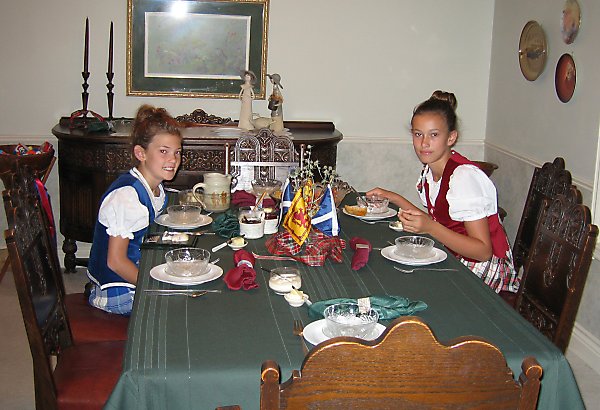 Here are Marisa and Kaylee McLellan having breakfast at the B&B before competitions in the Highland Dancing categories.