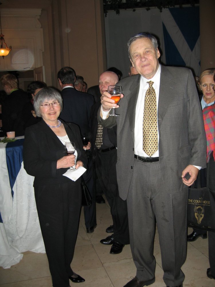 Pat and I admired the sash with the McNabb tartan worn by one of the guests, who commented on the fact that few others had worn their tartans. I did spot a tie with a MacKenzie tartan. We had a chat with long-time acquaintance, Harold Nelson, and both of us recalled some mutual friends and a few university capers. Meanwhile, Alastair McIntyre was surreptitiously taking a couple of pictures of us, and these have been included . . . for which many thanks.
