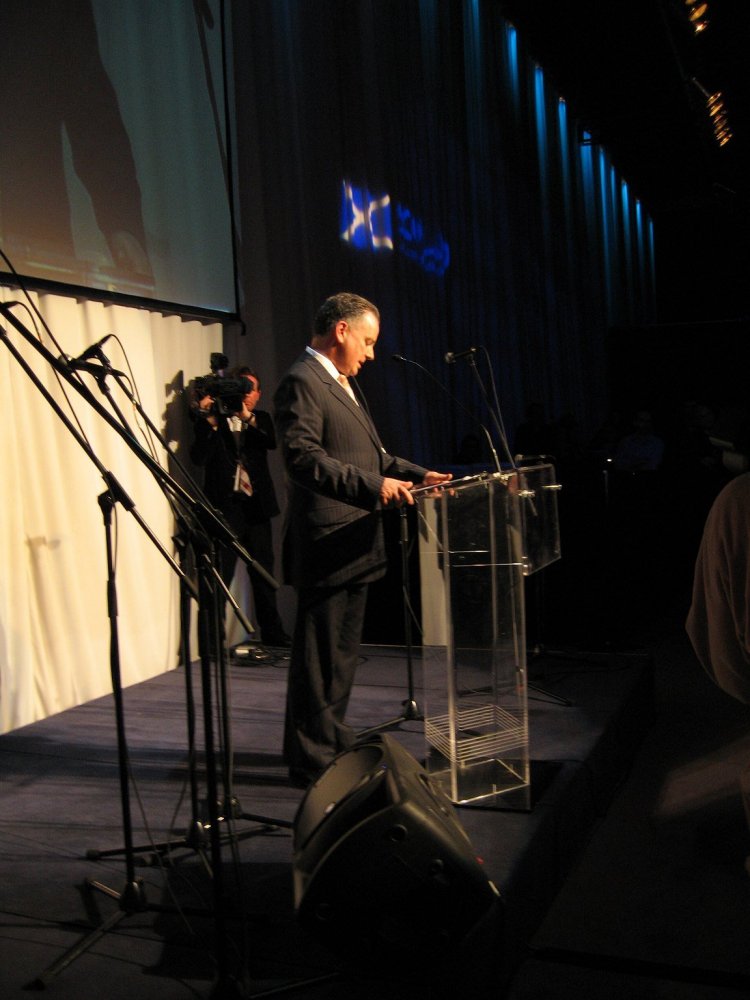 Wendy Mesley, the announcer from the CBC (Canadian Broadcasting Corporation), introduced the First Minister of Scotland, the Right Honourable Jack McConnell, who spoke about business and educational opportunities in Scotland.