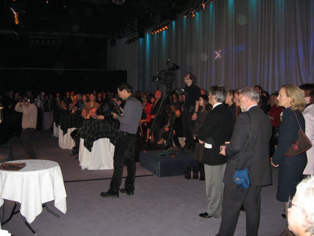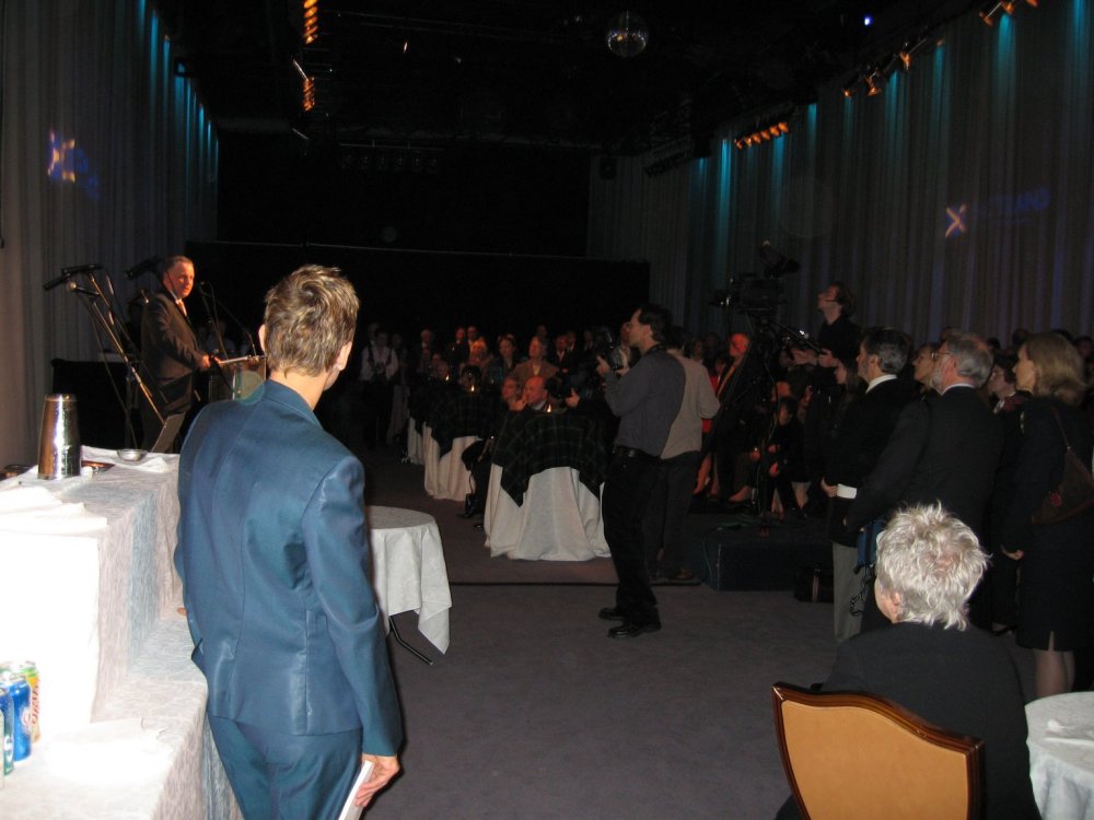 There is a shot of the attentive audience around the CBC crew that provided coverage of the event. The First Minister of Scotland addressed a few remarks in the direction of Wendy Mesley of the CBC before concluding his speech and announcing that entertainment would follow.