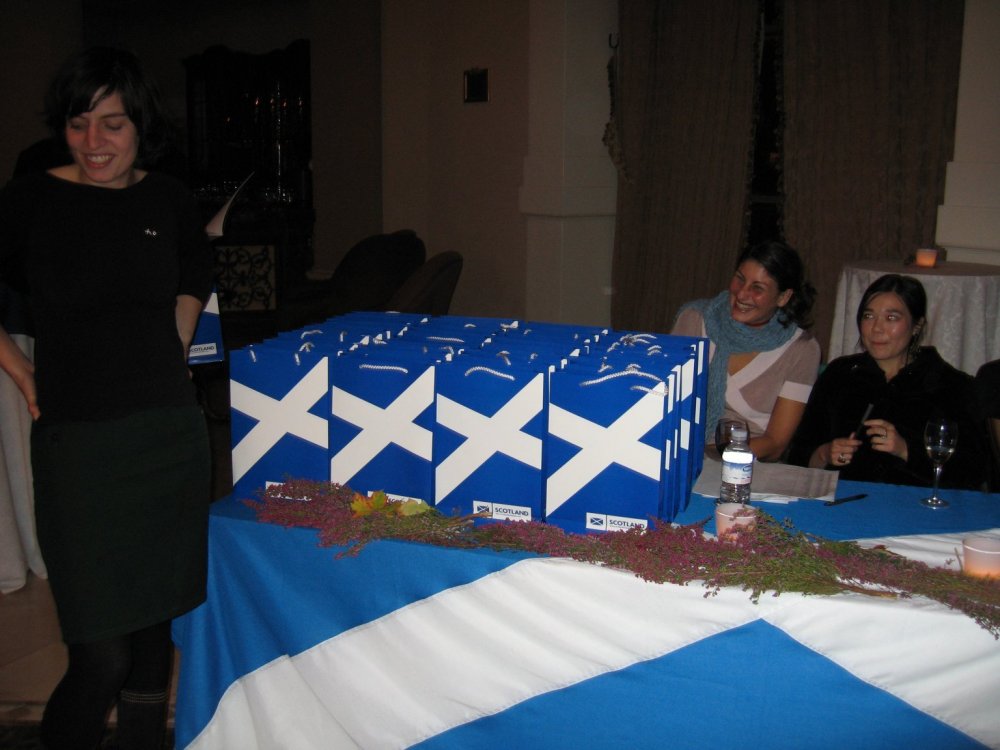 The young ladies at the reception table were embarrassed to have their pictures taken as Pat and I left the Liberty Grand. The gift bag was equally unexpected. When we arrived home and opened it, we found an impressive treasure . . . two lapel pins (the Scottish Saltire and the crossed flags of our two countries), a 45 gram orange and cardamon flavoured dark chocolate from Kshocolate Ltd in Glasgow, a fine ballpoint pen labelled "Scotland" beside the Saltire, a 128MB USB Flash Disk complete with connectors, plus a colourful booklet